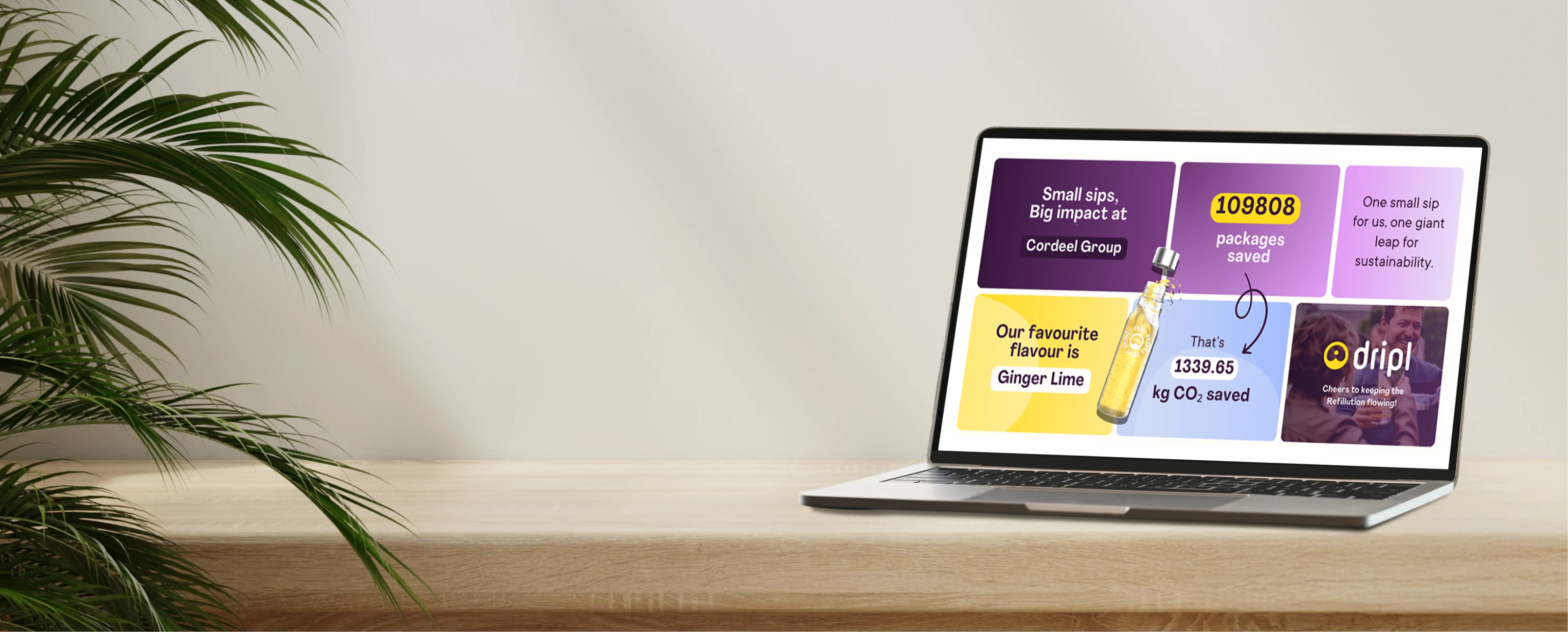 Get insights into your usage and sustainability data. With Dripl’s impact report, you can see exactly how many single-use packages and kilograms of CO₂ your team has saved.