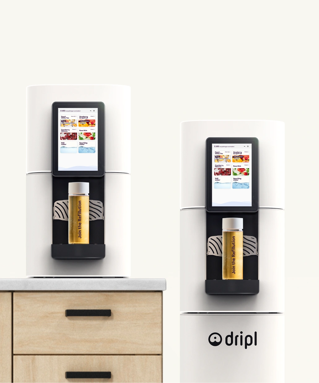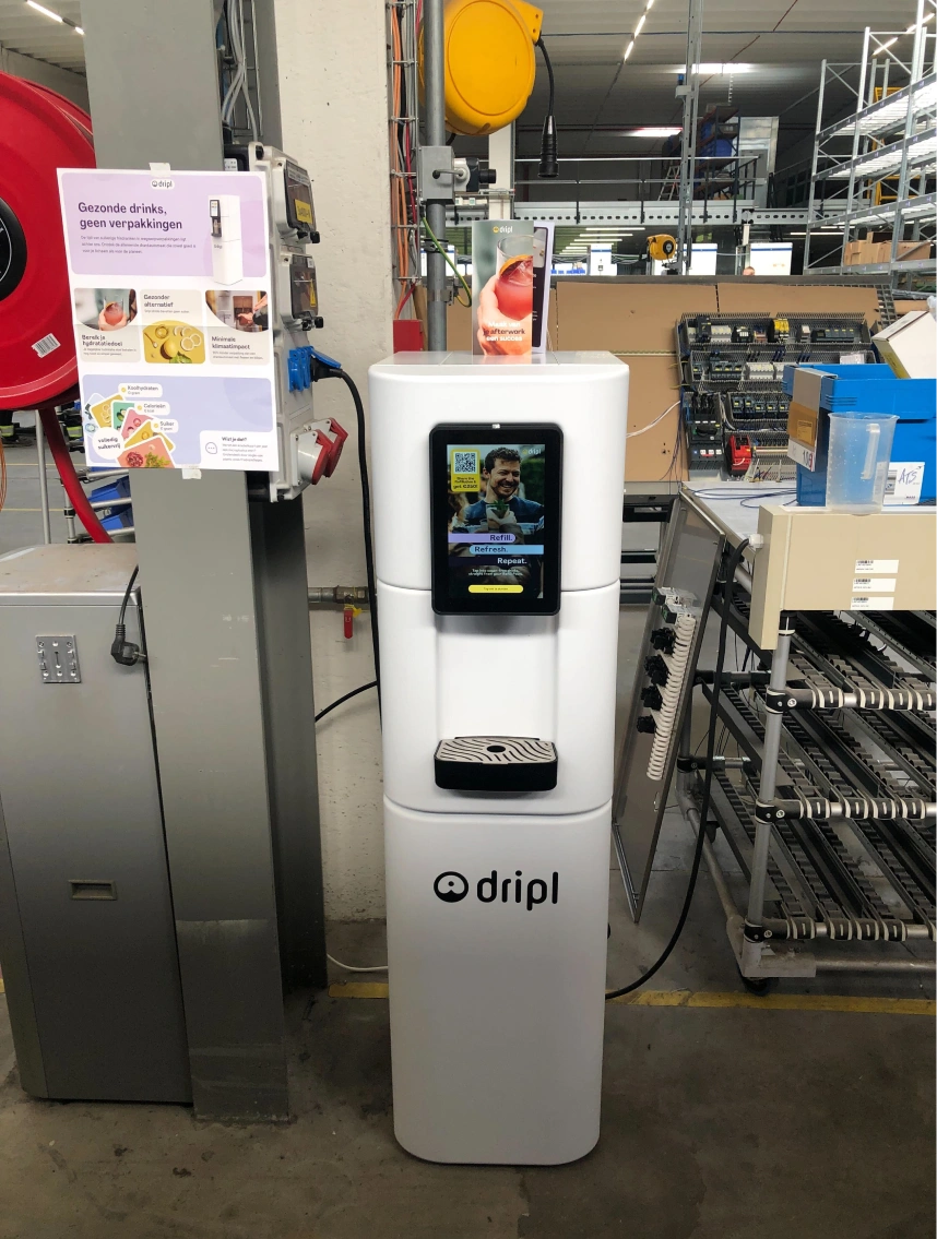 "Dripl plays on the simple principles of health and sustainability. The drinks delivered are a tasty and sustainable alternative to existing drink dispensers or fountains. The product is simple yet offers enough variety. It saves on packaging and water transportation and provides an answer to companies' need to keep employees healthy."